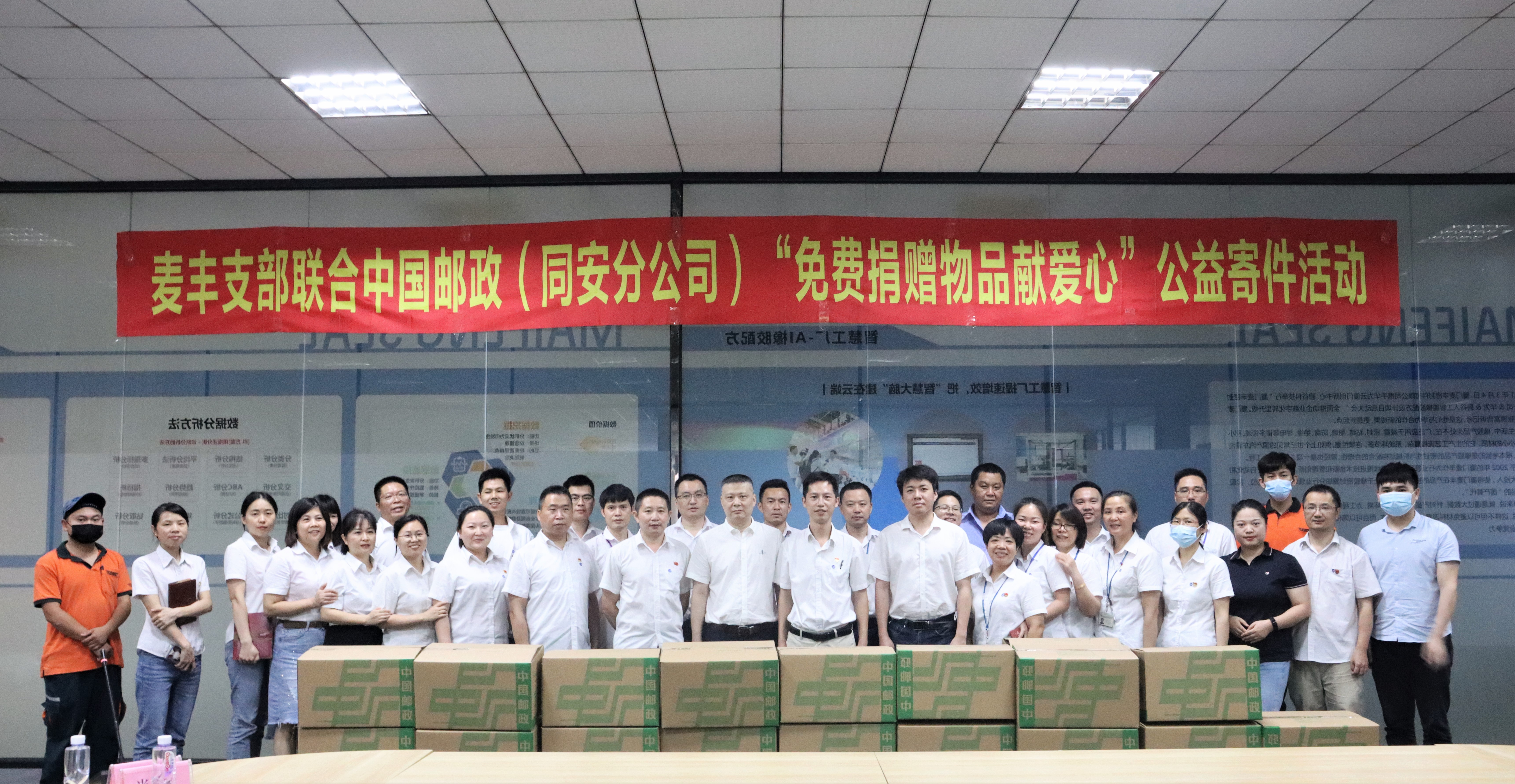 此次活動,麥豐支部邀請到了中國郵政同安分公司楊黔生總經理、鄧航副總經理參加。公司黨支部書記溫欣鼎、副書記肖建出席了活動現場并講話。公司全體黨員同志、工會委員都積極帶頭參與了此次捐贈活動,紛紛捐出自己的一份愛心。