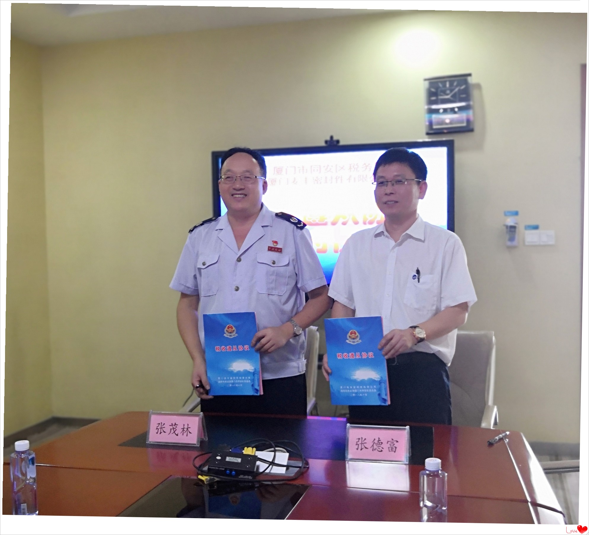 10月23日,同安區稅務局與我司舉行了《稅收遵從協議》續簽及《大企業個性化服務協議》簽約儀式,同安區稅務局副局長張茂林與我司總經理張德富分別代表雙方簽訂了協議。