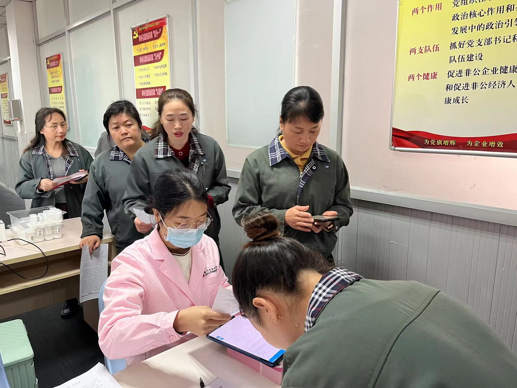 現場,工作人員組織女職工有序參加檢測,醫務人員認真核對女職工信息,為女職工進行“兩癌”篩查登記,建立檔案,耐心細致的為參檢女職工解答問題,詳細講解“兩癌”防治知識。女職工們紛紛表示,通過參加“兩癌”篩查,對自身健康狀況有了更深了解,也進一步提高了自我保健意識,真切地感受到了工會組織的關心和溫暖。
