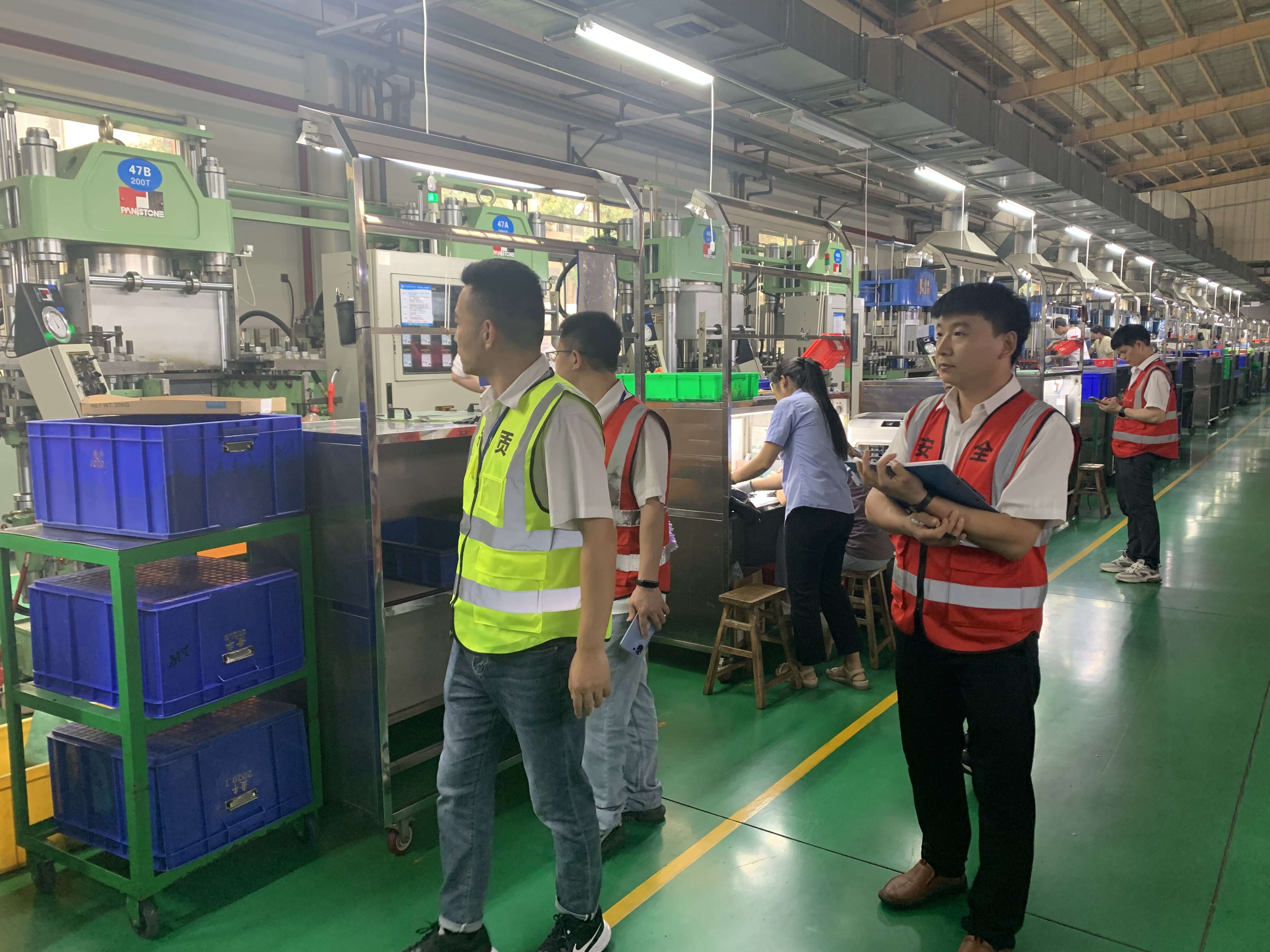 此次檢查對(duì)用電、重點(diǎn)設(shè)備安全、消防通道、車間5S等方面進(jìn)行了大檢查,檢查組發(fā)現(xiàn)不良品框子混雜物、液體瓶子標(biāo)簽未貼亂貼、柱子防撞條損壞未換、設(shè)備點(diǎn)檢不清等問(wèn)題,并要求現(xiàn)場(chǎng)組長(zhǎng)對(duì)檢查出的問(wèn)題及時(shí)進(jìn)行記錄整改。