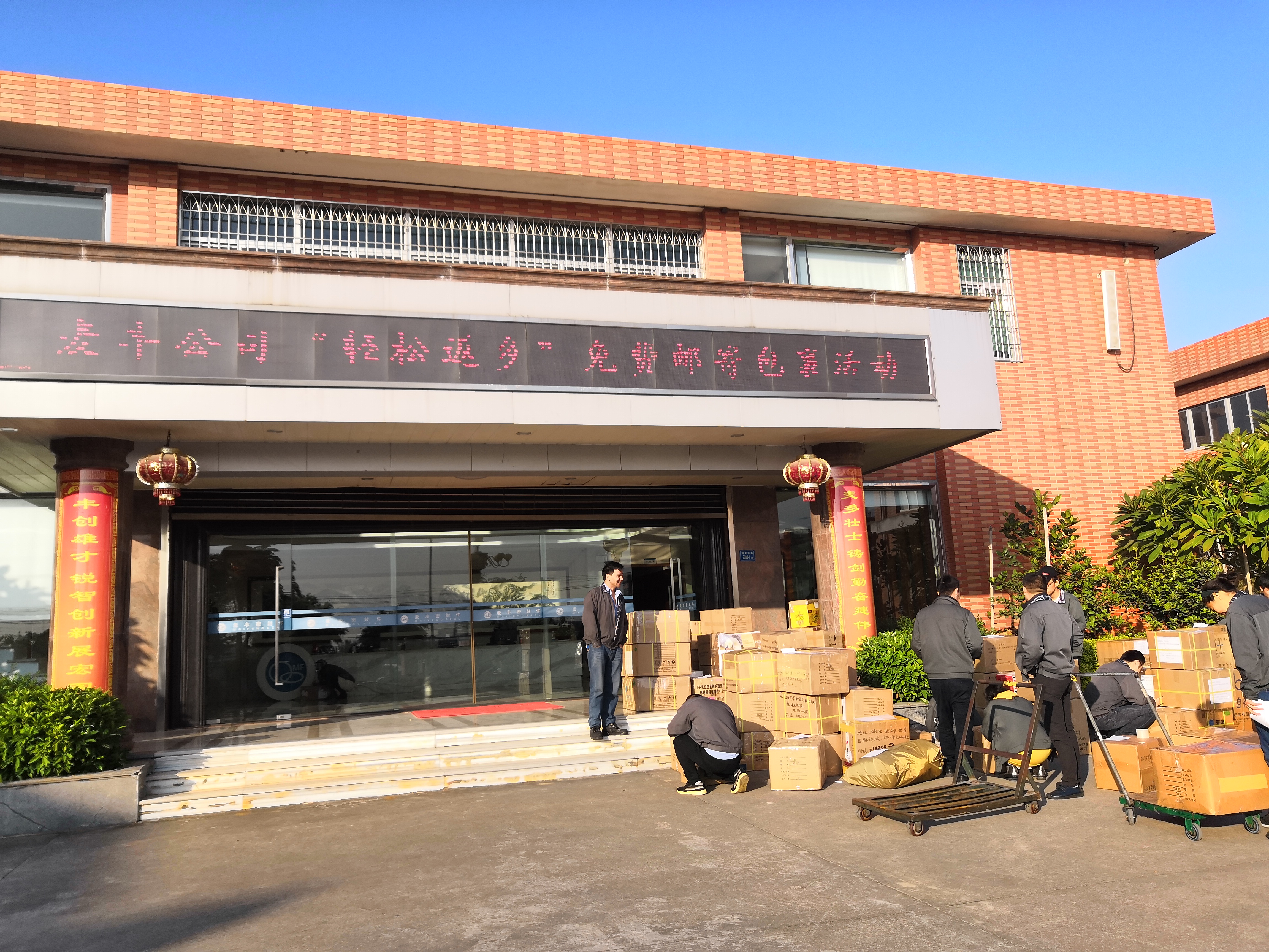 當天上午辦公樓前熱鬧非凡,員工們在工作人員的指導下有序地將整理好的包裹放至指定地點,準備郵寄返鄉,員工們臉上掛滿笑容,現場充滿了喜慶和歡笑。